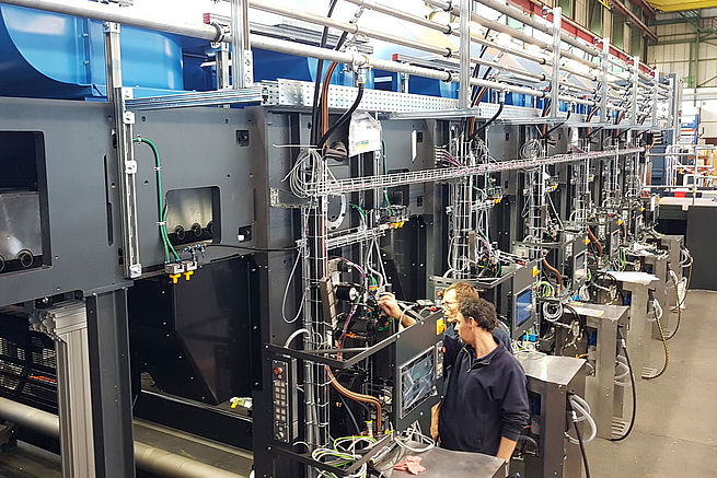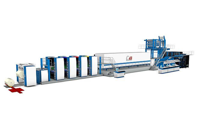 L'impianto è equipaggiato con Patras A per l'alimentazione delle bobine di carta, uno sbobinatore  automatico, quattro unità di stampa con cambialastre completamente automatici, un forno ad alte prestazioni di Contiweb e una piegatrice variabile V5 per la produzione in fibra e controfibra. Un sistema di misurazione e regolazione dell'inchiostro in linea assicura un’elevata stabilità dei processi. Per il flusso digitalizzato dei dati di prestampa, il monitoraggio della produzione e l'analisi è installato il sistema di gestione della produzione LogoTronic.