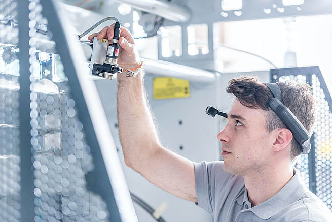 Le moderne tecnologie di manutenzione remota sono di particolare importanza. Per le richieste dei clienti è disponibile PressSupport 24 – una hotline di assistenza raggiungibile 24 ore su 24. Utilizzando i DataGlass per la realtà aumentata, gli specialisti dell'assistenza di Koenig & Bauer possono seguire in tempo reale quel che viene visto dal tecnico sul posto. Questo semplifica la manutenzione e aumenta quindi il tempo di esercizio assolutamente fondamentale della macchina da stampa. “Utilizzando le tecnologie di manutenzione remota, siamo in grado di risolvere rapidamente e facilmente oltre l’80% delle richieste di assistenza dei nostri clienti, senza dispendiosi interventi sul posto”, spiega Bolza-Schünemann.