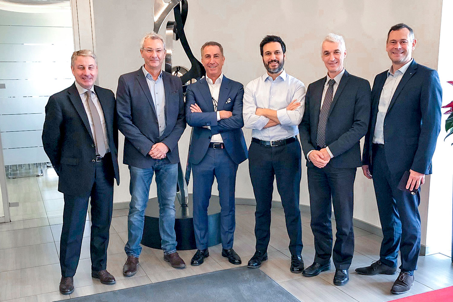 • Subito dopo la firma del contratto nello stabilimento di Grafica Veneta (da sin. a des.): Emanuele Pogliani, Vendite Koenig & Bauer IT; Martin Schoeps, Responsabile della gestione manutenzione Koenig & Bauer Digital & Webfed; Fabio Franceschi, Proprietario e presidente di Grafica Veneta; Giorgio Bertan, Amministratore Grafica Veneta; Peter Andrich, Amministratore Koenig & Bauer IT; Jochen Schwab, Responsabile progetti di assistenza e gestione contratti di Koenig & Bauer Digital & Webfed (1)